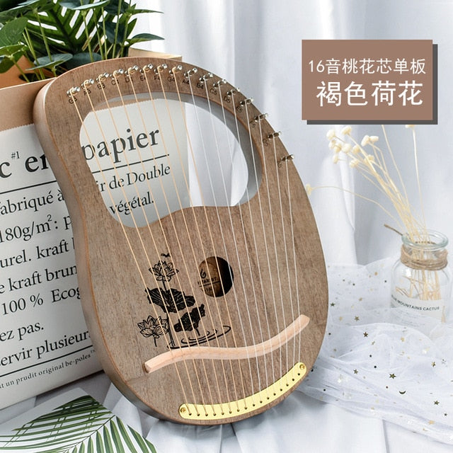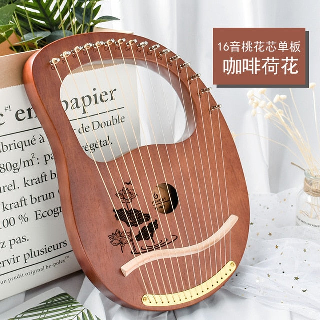 10/16 string wood lined lyre harp metal trap Mahony solid wood string instrument with Draagbag (4956978315395)