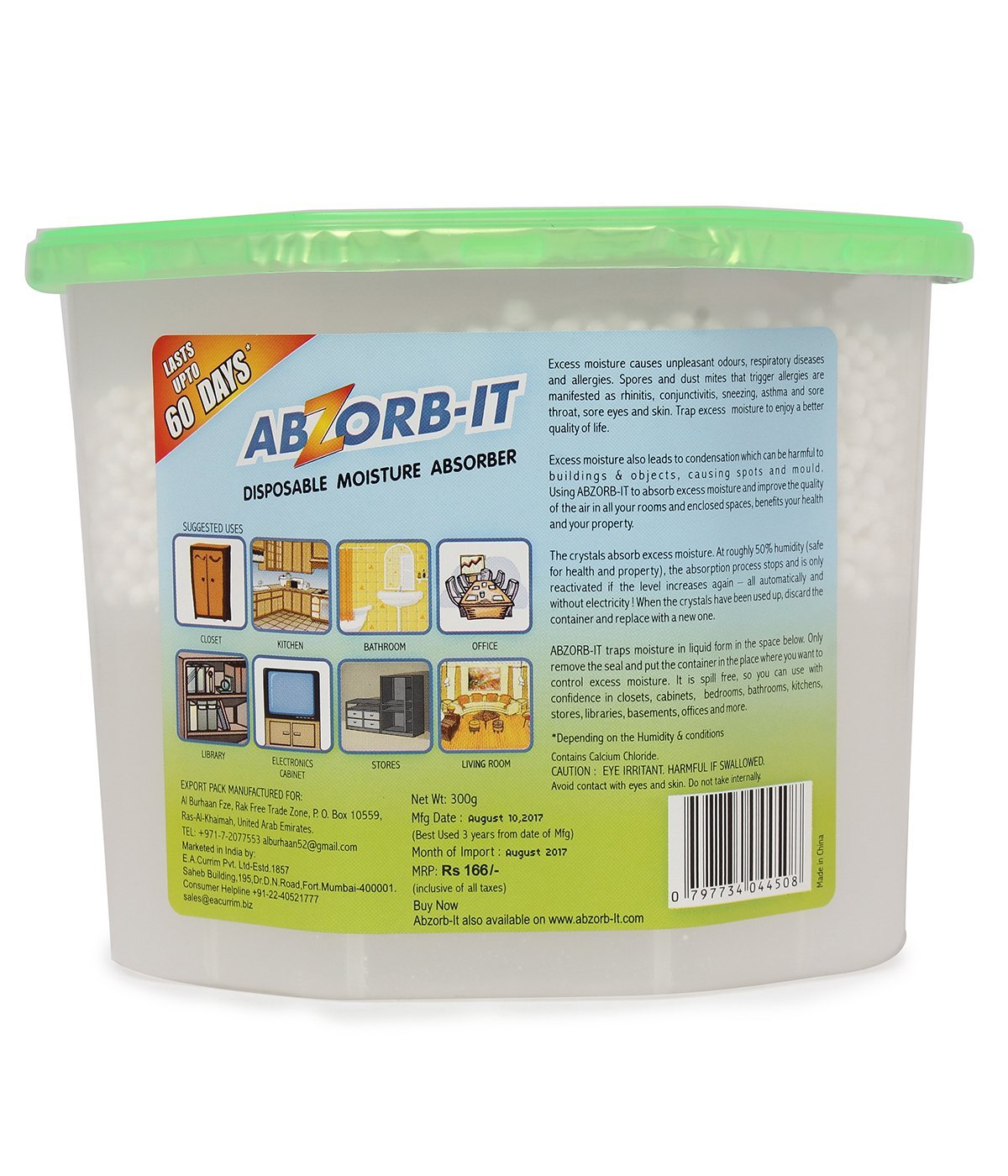 Details: Abzorb-It Moisture Absorber comes in pack of 3. This disposable moisture absorber are available at a reasonable range. It absorbs excess moisture which causes unpleasant odours, respiratory diseases and allergy.