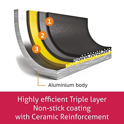 - Highly efficient triple layer Non-stick coating with ceramic reinforcement.