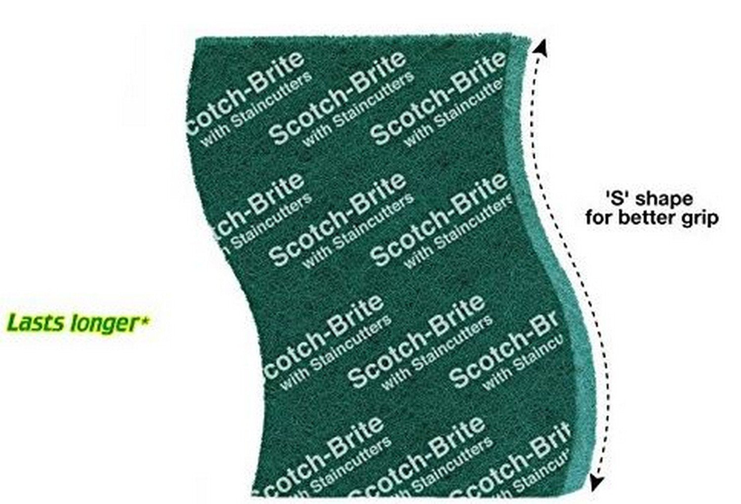Details: Scrub pad made up of superior nylon 66 fibre, stain cutter technology uniquely shaped, evenly distributed alox particles and unique S shape.